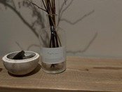レモンとミント の透明感、爽快感のある柑橘からはじまり徐々に優しく安心感のあるウッディ系の香りへと変化していきます。